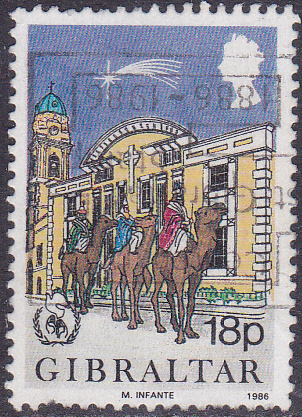 Die Weihnachtsmarken 1983 aus Gibraltar zeigten zum 500. Geburtstag von Raffael Gemälde von Raffael. Hier zeige ich die Marke zu 17 Pence (MiNr 473) mit seinem Gemälde "Madonna di Foligno".