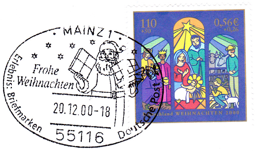 Dieser Freistempel der Märkischen Verkehrsgesellschaft GmbH vom 14.12.2005 wird neben den Weihnachts- und Neujahrswünschen auch noch ein Weihnachtsmann mit einem großen Geschenkesack gezeigt.