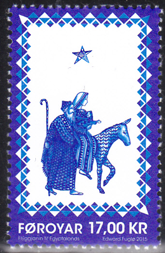 Auf der zweiten Weihnachtsmarke 2015 aus Dänemark Färöer (MiNr 845) werden ebenfalls nach einer Illustration von Edward Føgle Joseph, Maria und das Jesuskind auf der Flucht abgebildet.
