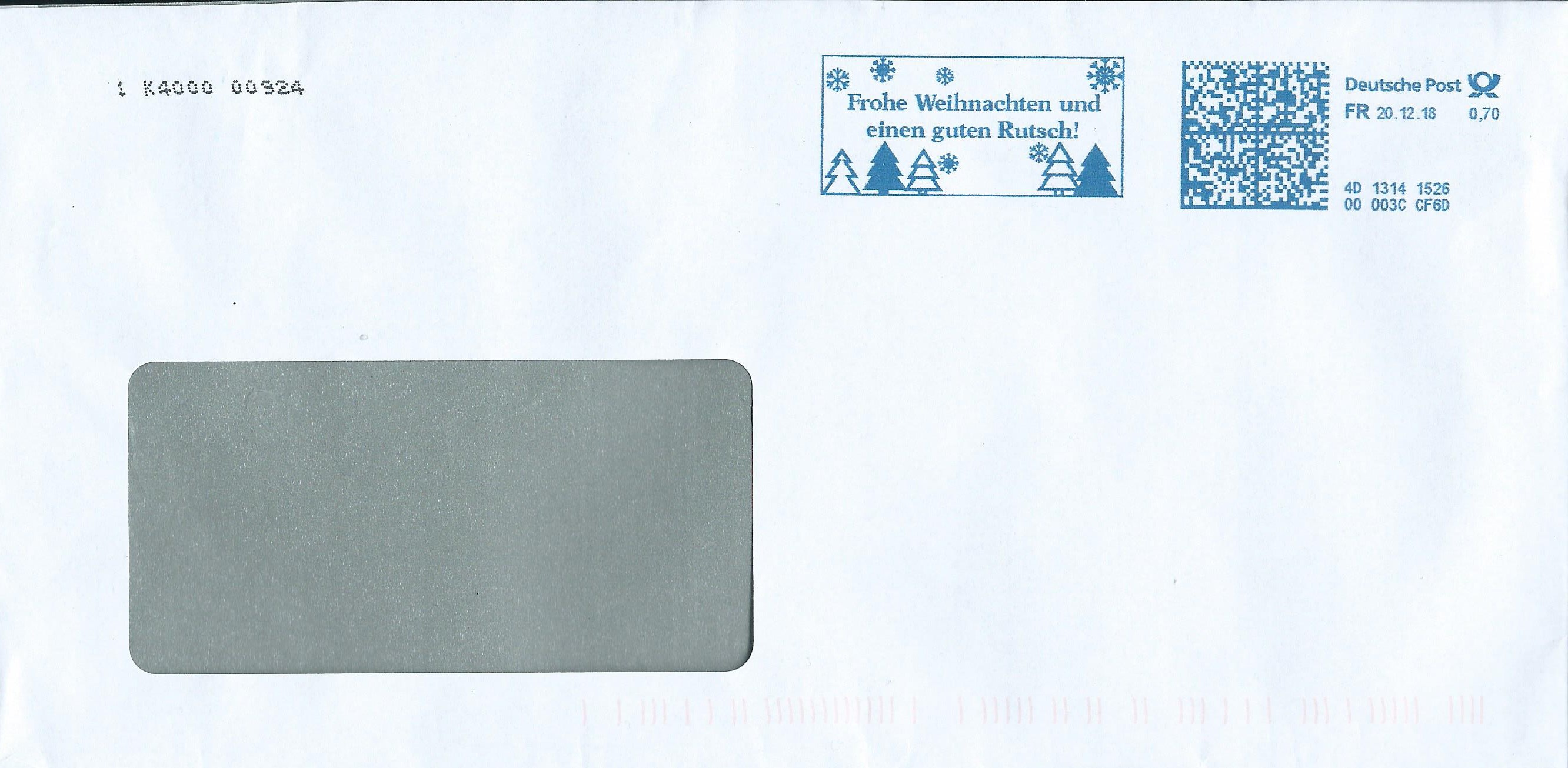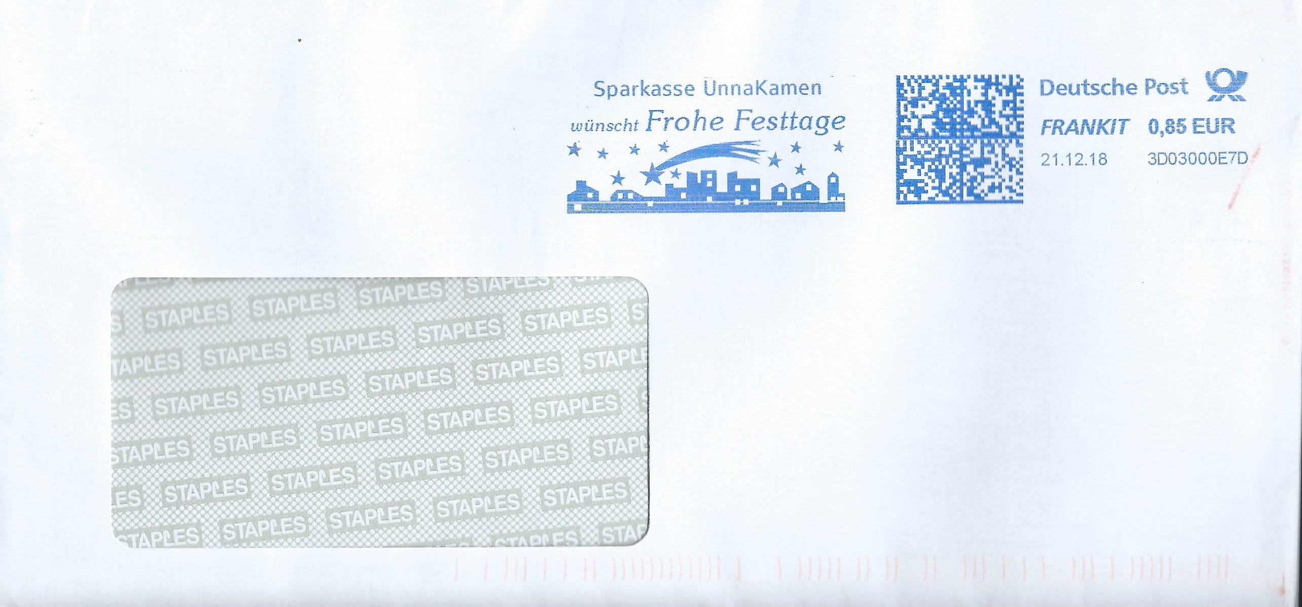 Gefolgt von der Sparkasse Essen (Absender rückseitig) vom 20.12.18: