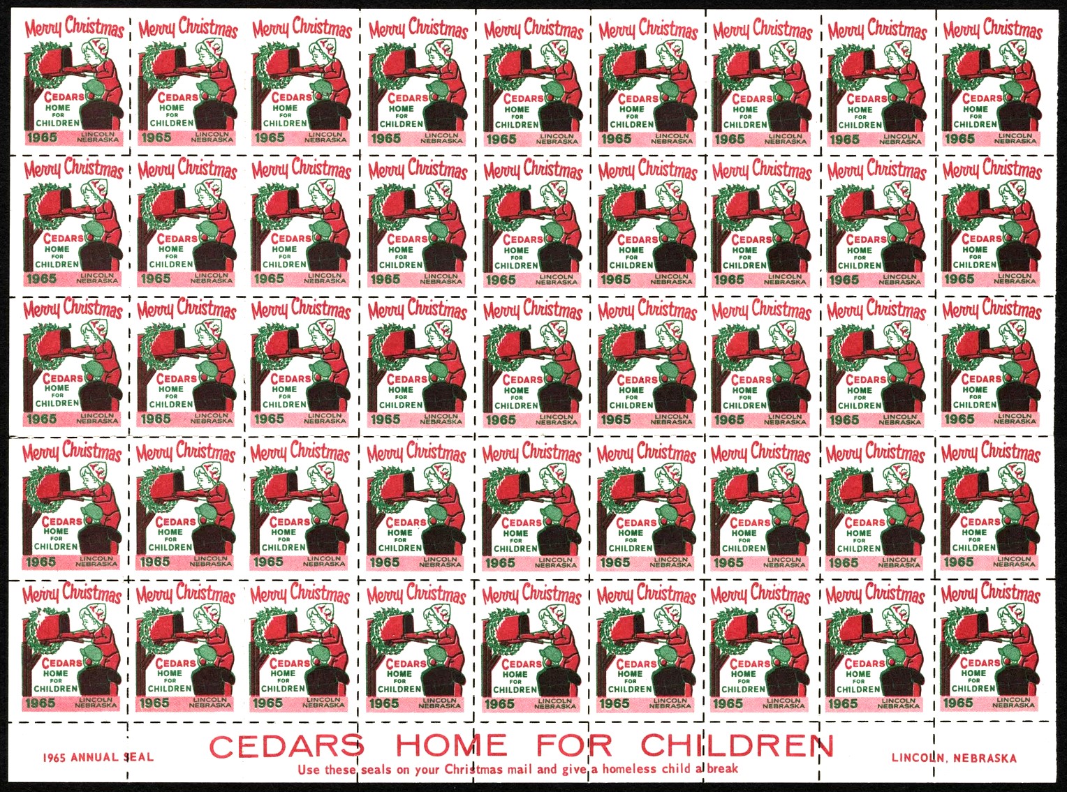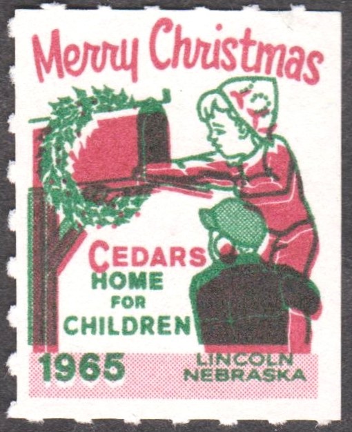 Den Angang macht diese Vignette "Merry Christmas CEDARS HOME FOR CHILDREN 1965 LINCOLN NEBRASKA":