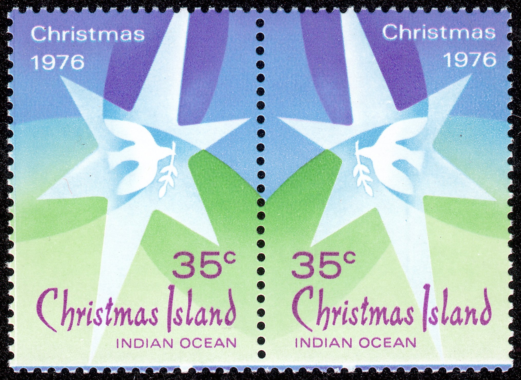 Der Stern von Bethlehem diente in Kombination mit einer Friedenstaube bei den 1976 auf der im Indischen Ozean liegenden Weihnachtsinsel als Motiv.