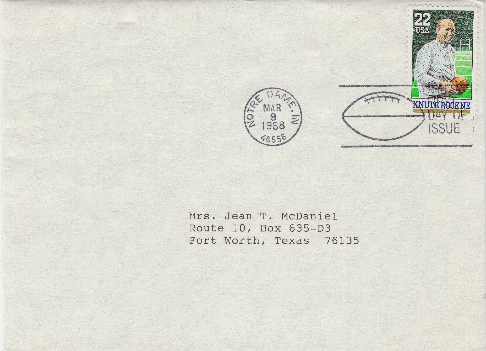 Der United States Postal Service würdigte Knute Rokne am 09.03.1988 in Erinnerung an seinen 100. Geburtstag mit der Herausgabe dieser Sondermarke: