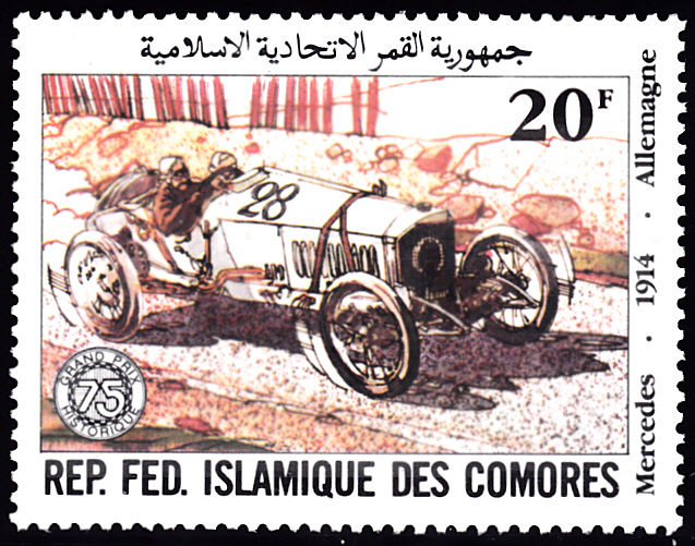 Auf den Komoren ist eine Markenserie zum Jubiläum "75 Jahre Großer Preis von Frankreich" erschienen. Auf der Marke zu 20 Franc (MiNr 646) dieser Serie wird ein Mercedes-Rennwagen Baujahr 1914 gezeigt. Mit diesem Wagen hat Christian Friedrich Lautenschlager (geb. 13. April 1877 in Magstadt; gest. 3. Jan. 1954 in Untertürkheim; ein deutscher Mechaniker und Automobilrennfahrer) denn Großer Preis von Frankreich 1914 bei Lyon gewonnen.
