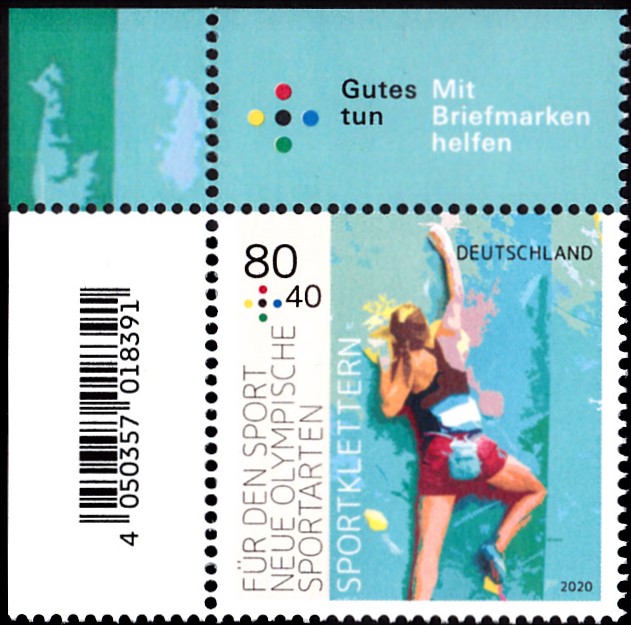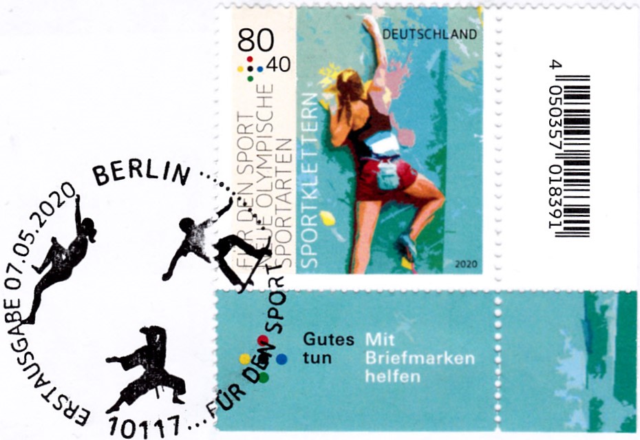 Bei der Deutschen Post erschien in der Serie "Für den Sport" eine Marke (MiNr 3542) zur neuen olympischen Sportart Sportklettern.