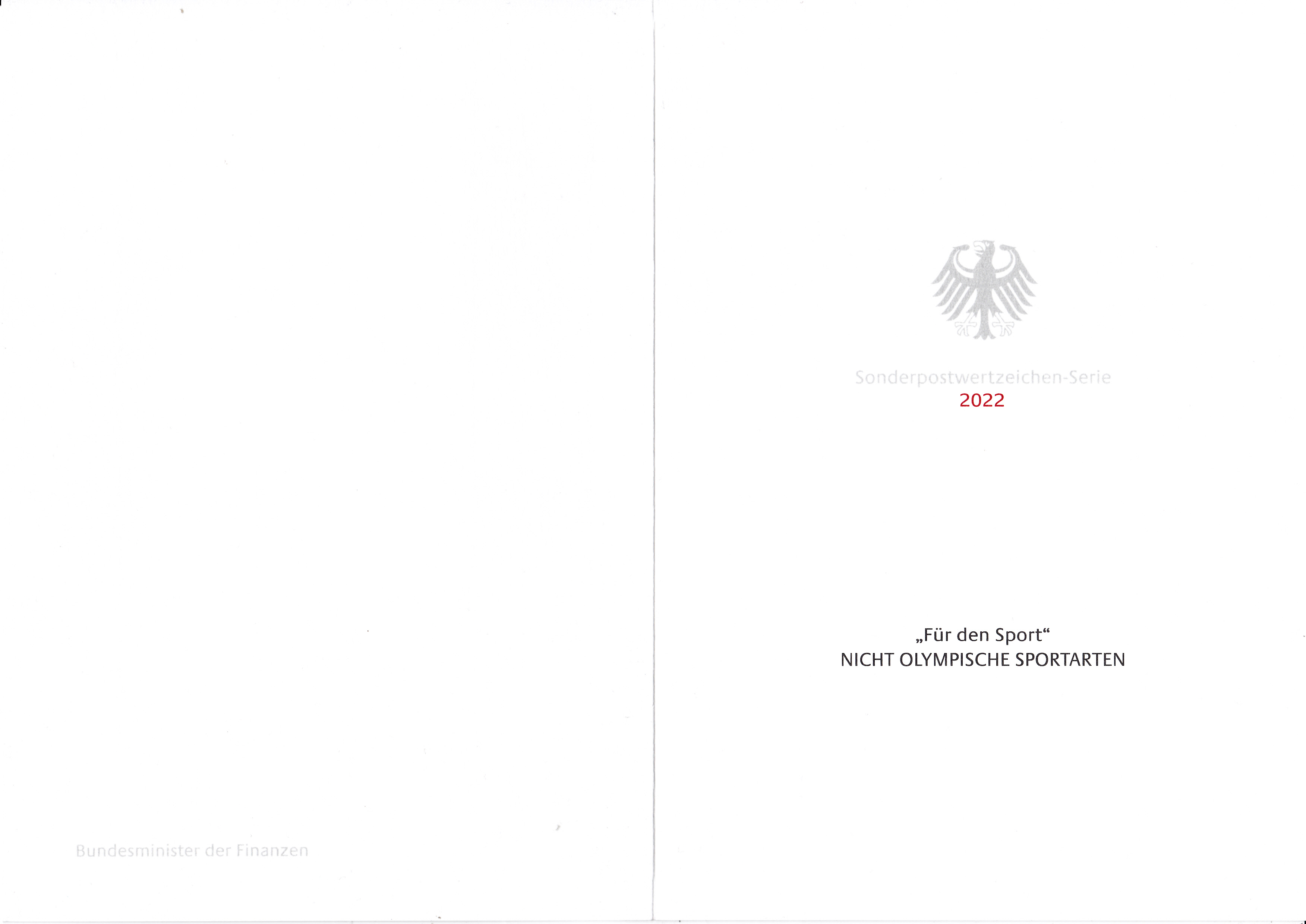 Ministerkarte des Finanzministers mit je einer Marke für die Sporthilfe 2022 (MiNr 3684 bis 36686) mit Motiven zum Thema "nicht olympische Sportarten". Zwei Marken sind mit den Ersttagsonderstempel Bonn gestempelt und eine Marke erhielt den Ersttagsonderstempel Berlin.