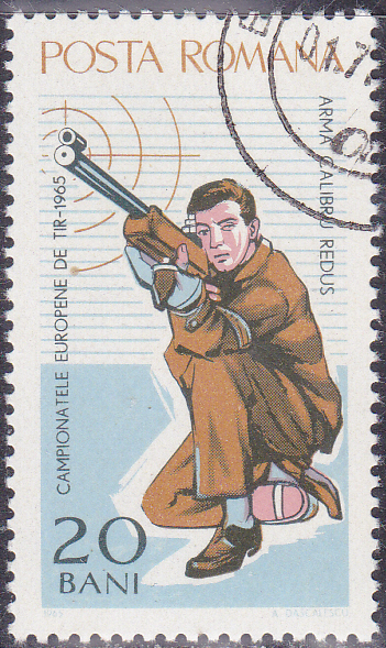 Zur Europa-Meisterschaften im Schießen 1955 ist in Rumänien eine Marke (MiNr 1535) mit einem Pistolenschützen vor einer Scheibe mit gekreuzten Gewehren erschienen.