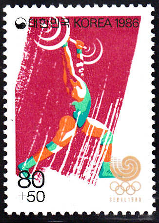 Zu den Olympischen Spielen 1988 in Seoul erschien in Korea-Süd auch eine Marke mit der Abbildung eines Gewichthebers bei einem Versuch im Reißen mit einem Ausfallschritt (MiNr 1477).