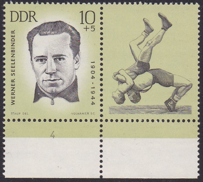 In der DDR erschien auch eine Zuschlagsmarke (MiNr 859) mit dem Porträt des Ringers Werner Seelenbinder und einem Zierfeld mit der Abbildung zweier Ringer beim Kampf.