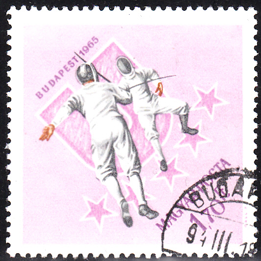 In der Markenserie aus Ungarn zu den Olympischen Spielen 1956 in Melbourne ist auch diese Marke (MiNr 1274) mit der Abbildung von zwei Fechter beim Kampf erschienen.