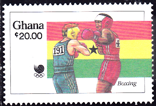 In einer Serie zu den Sommerspielen in Seoul ist in Ghana diese Marke (MiNr 1205) mit zwei Boxer beim Kampf erschienen.