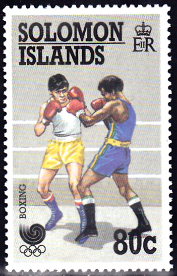 Auf den Salomoninseln ist in einer Serie zu den Spielen 1988 diese Marke (MiNr 690) mit einer Szene bei einem Boxkampf erschienen.