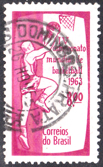 Zur 4. Basketball-Weltmeisterschaft der Herren in Rio de Janeiro erschien in Brasilien eine Marke (MiNr 1034) mit einem Basketballspieler bei einem Korbwurf.
