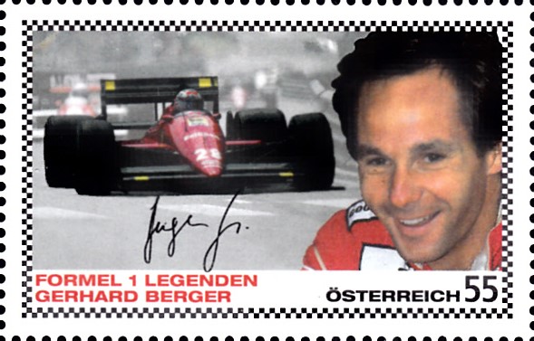 Aus Österreich kommt diese Marke (MiNr 2656) mit Gerhard Berger.