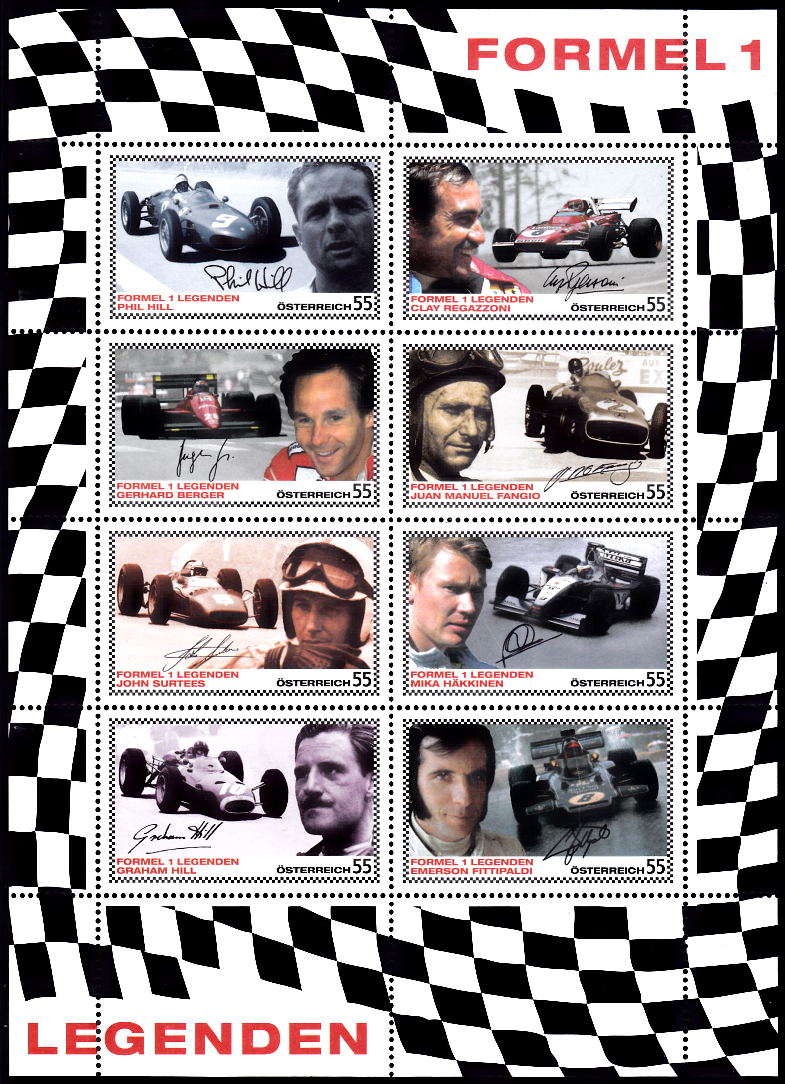 In dieser Ausgabe gibt es auch eine Marke (MiNr 2660), die Graham Hill abbildet.