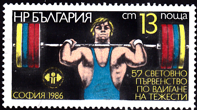 Zu den Weltmeisterschaften im Gewichtheben 1986 in Sofia wurde in Bulgarien diese Marke (MiNr 3503) mit einem Gewichtheber bei einem Versuch im Stoßen verausgabt.