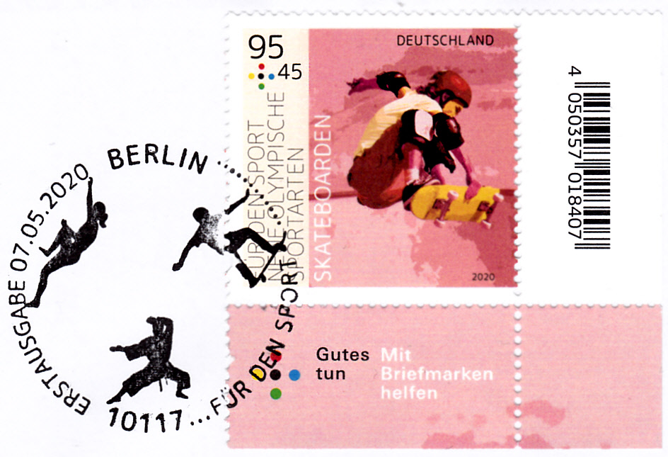 Bei der Deutschen Post erschien in der Serie "Für den Sport" eine Marke (MiNr 3543) zur neuen olympischen Sportart Skateboarden.