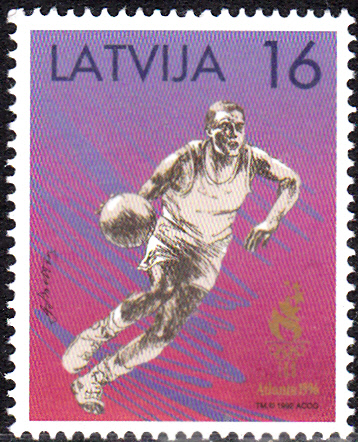 In Lettland erschien in einer Serie zu den Olympischen Spielen 1996 diese Marke (MiNr 428) mit der Abbildung eines Basketballspielers.