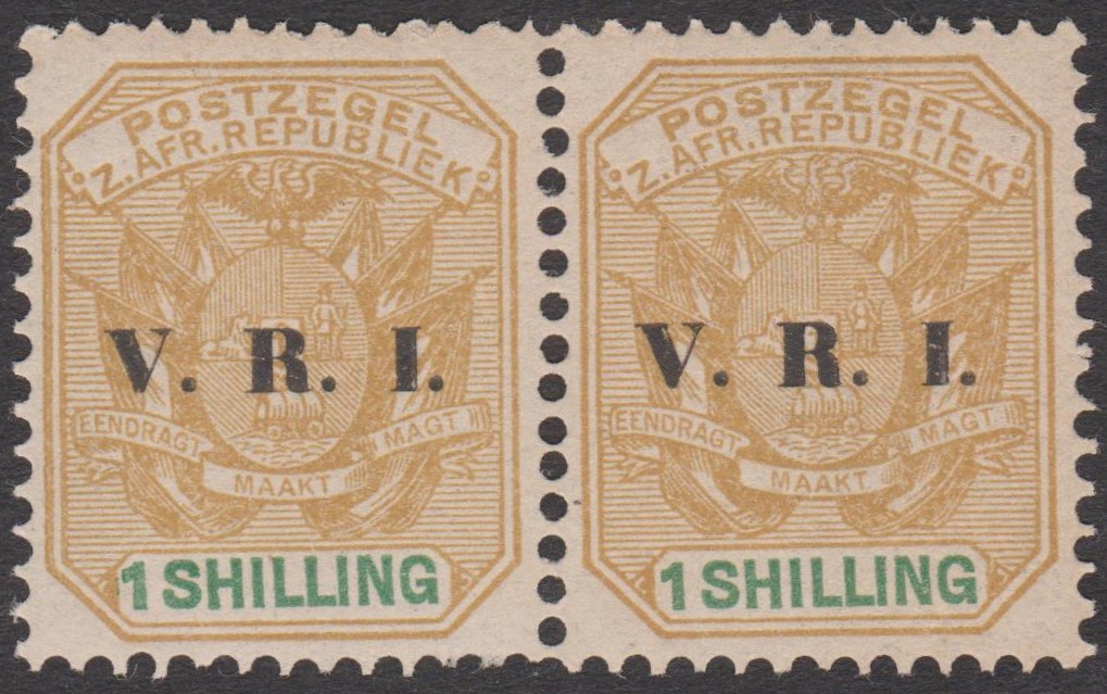 Transvaal MiNr. 91 erschien am 18.06.1900, indem die Freimarke Transvaal MiNr. 55 mit einem Aufdruck V. R. I. versehen wurde. V. R. I. steht für Victoria Regina Imperatrix.