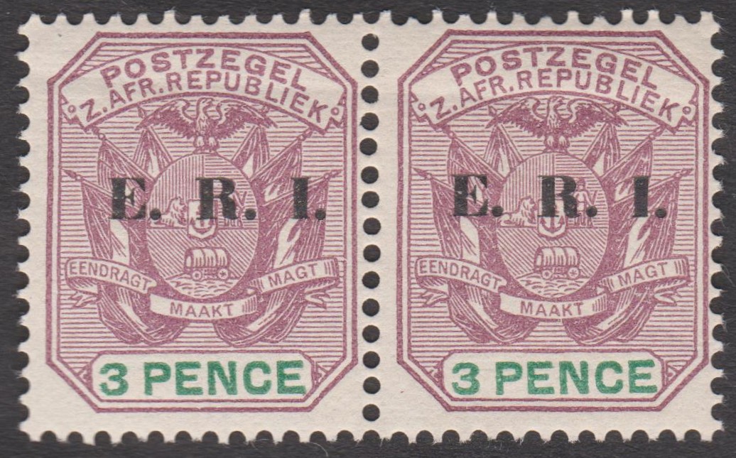 Transvaal MiNr. 100 erschien im Oktober 1902, indem die Freimarke Transvaal MiNr. 56 mit einem Aufdruck E. R. I. versehen wurde. E. R. I. steht für Eduardus Rex Imperator.