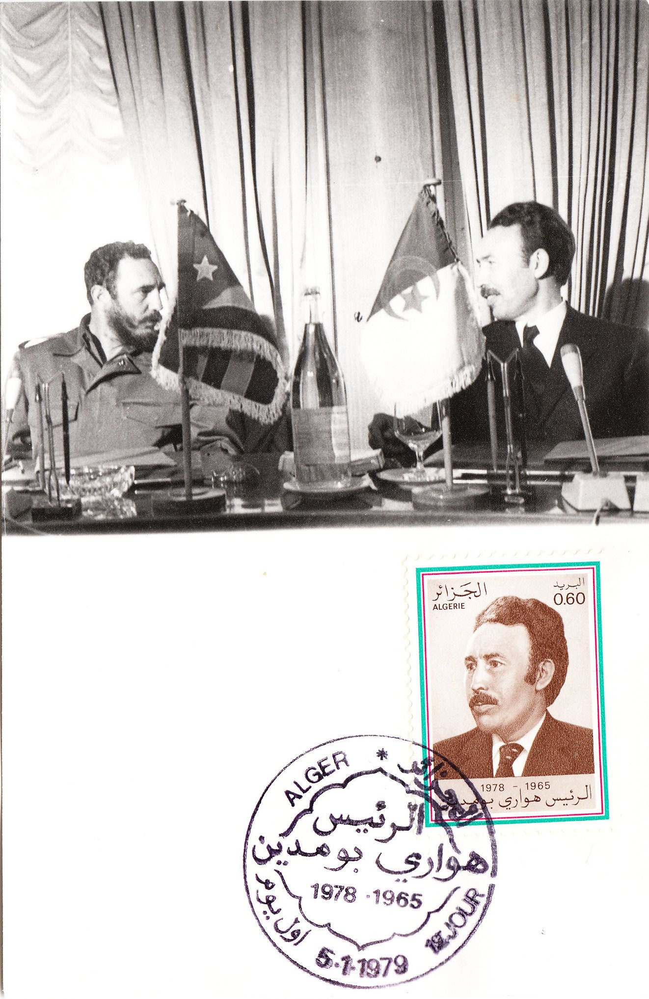 Diese Maximumkarte ehrt Houari Boumedienne mit einem 1979 ausgegebenem Postwertzeichen: