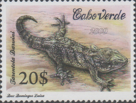 Zum 200. Geburtstag von Charles Darwin erschien diese Ausgabe aus drei zusammen hängenden Briefmarken.