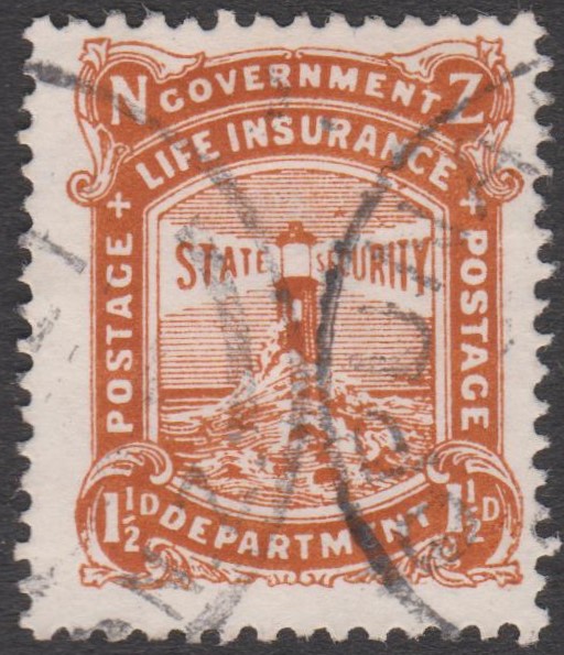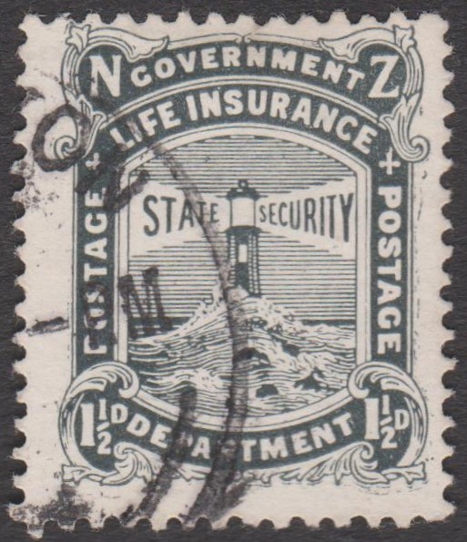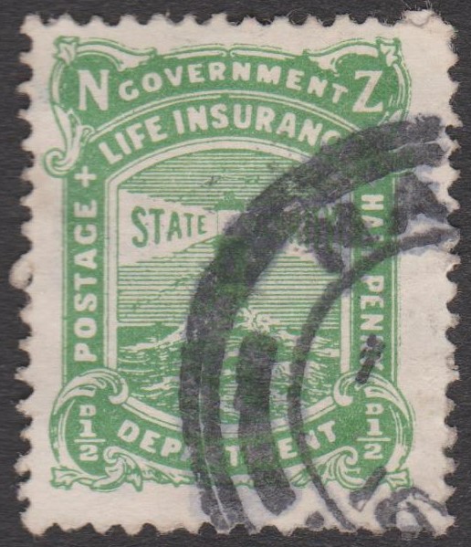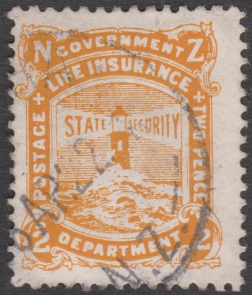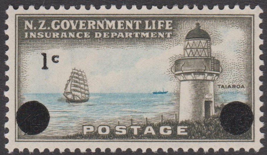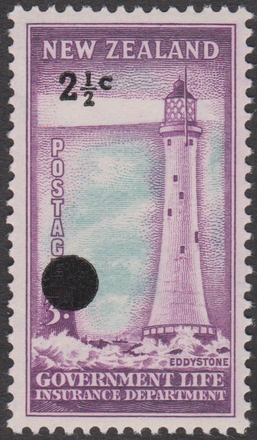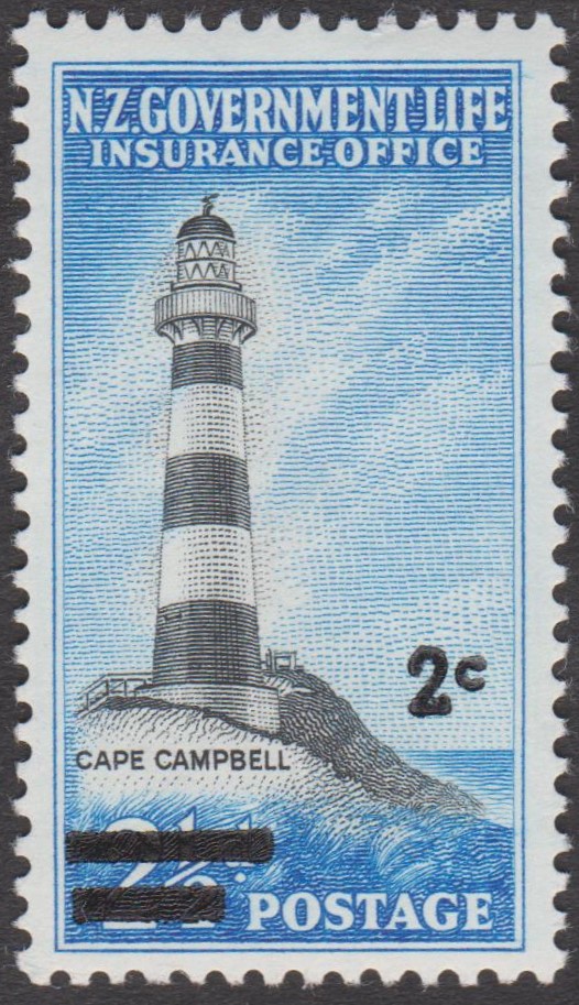 Neuseeland - Staatliche Lebensversicherung MiNr. 34 mit Buchdruck-Aufdruck der neuen Währung "2 c" in Schwarz (auf 2 1/2 P = MiNr. 28):