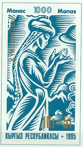 das Bild der Marke zu 10T + 5T (MiNr 64 B) zeigt Aitschurek, die Frau des Manas.