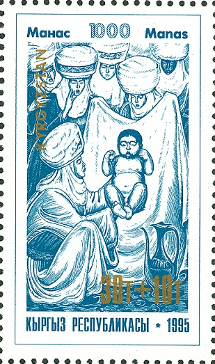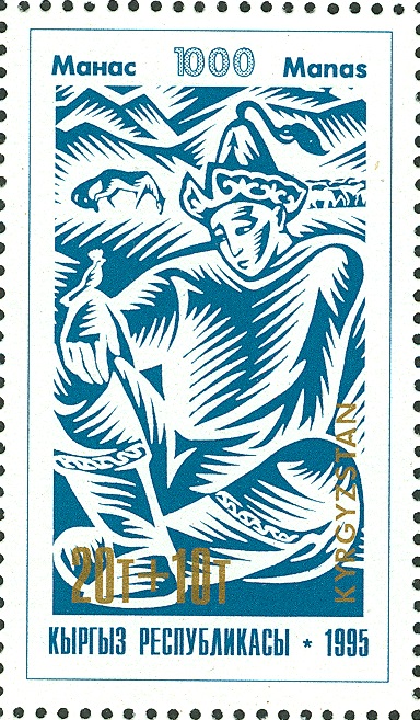 diese Serie ist am 23.6.1995 erschienen zu dem Thema 1000 Jahre kirgisisches Nationalepos "Manas". Die beiden gezeigten Marken zeigen folgende Motive: