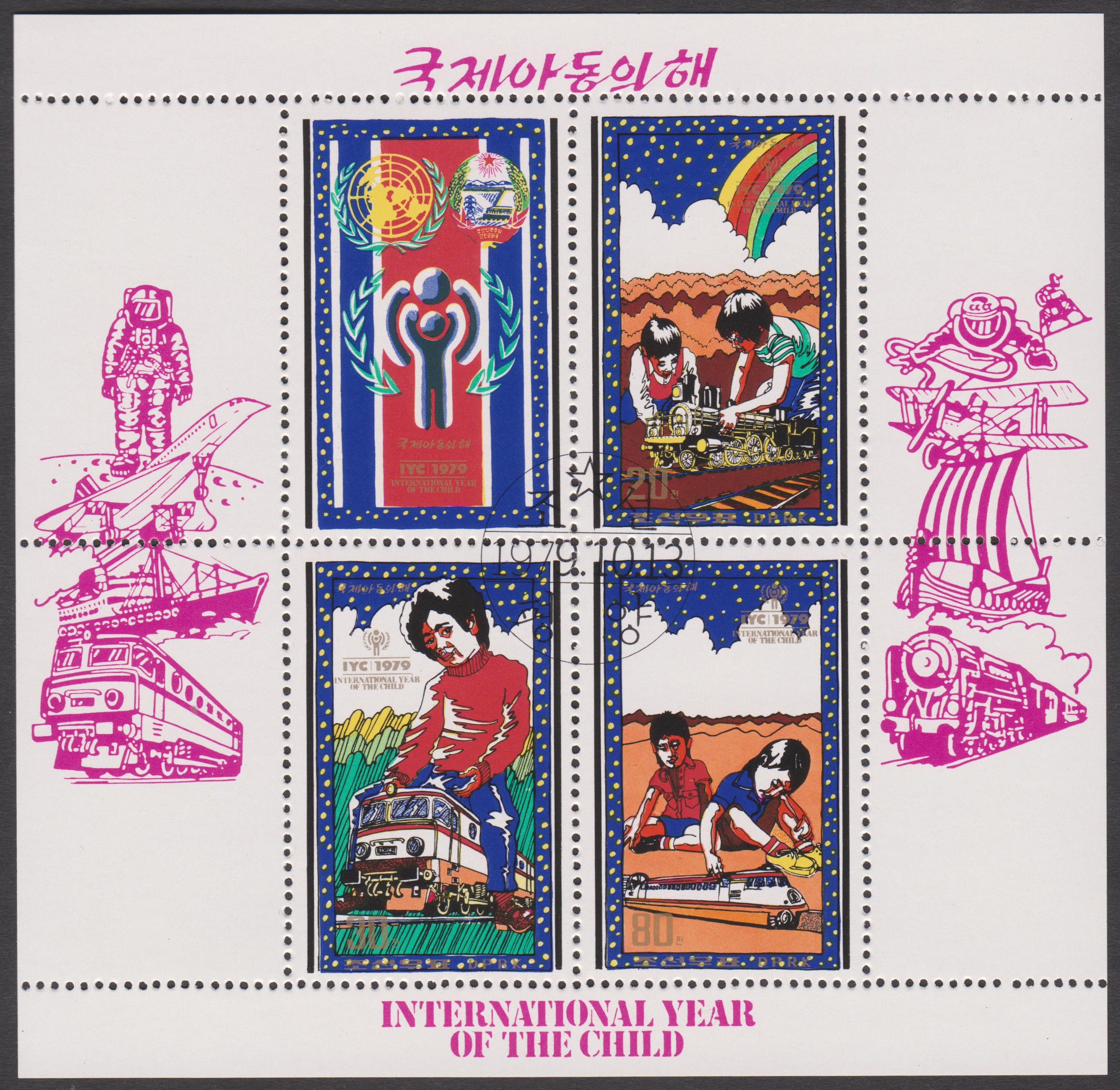 Dieser Block 63 A erschien zum Internationalen Jahr des Kindes und zeigt Kinder beim Spielen mit der Spielzeugeisenbahn: