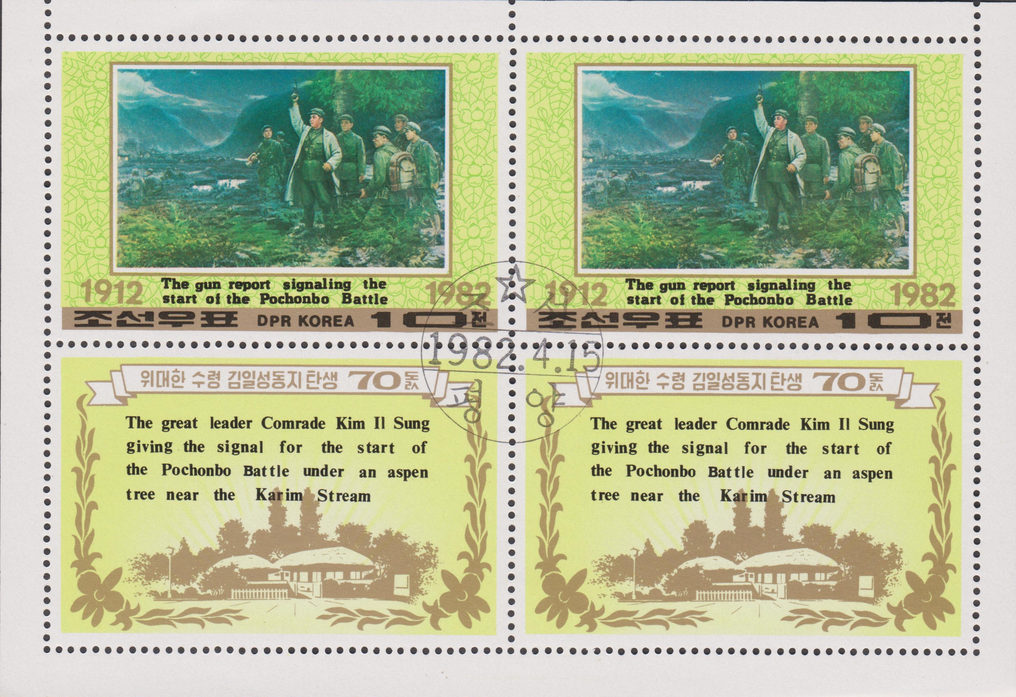 Nordkorea MiNr. 2202 erschien zum 70. Geburtstag von Präsident KIM IL SUNG und zeigt das Signal zur Schlacht bei Pochonbo: