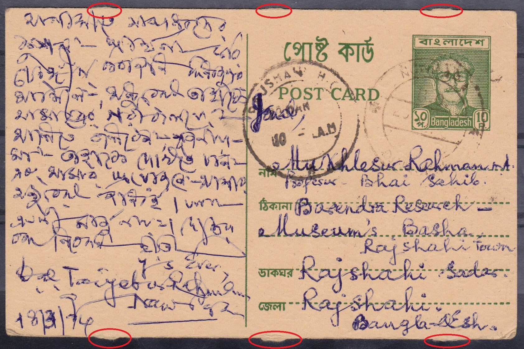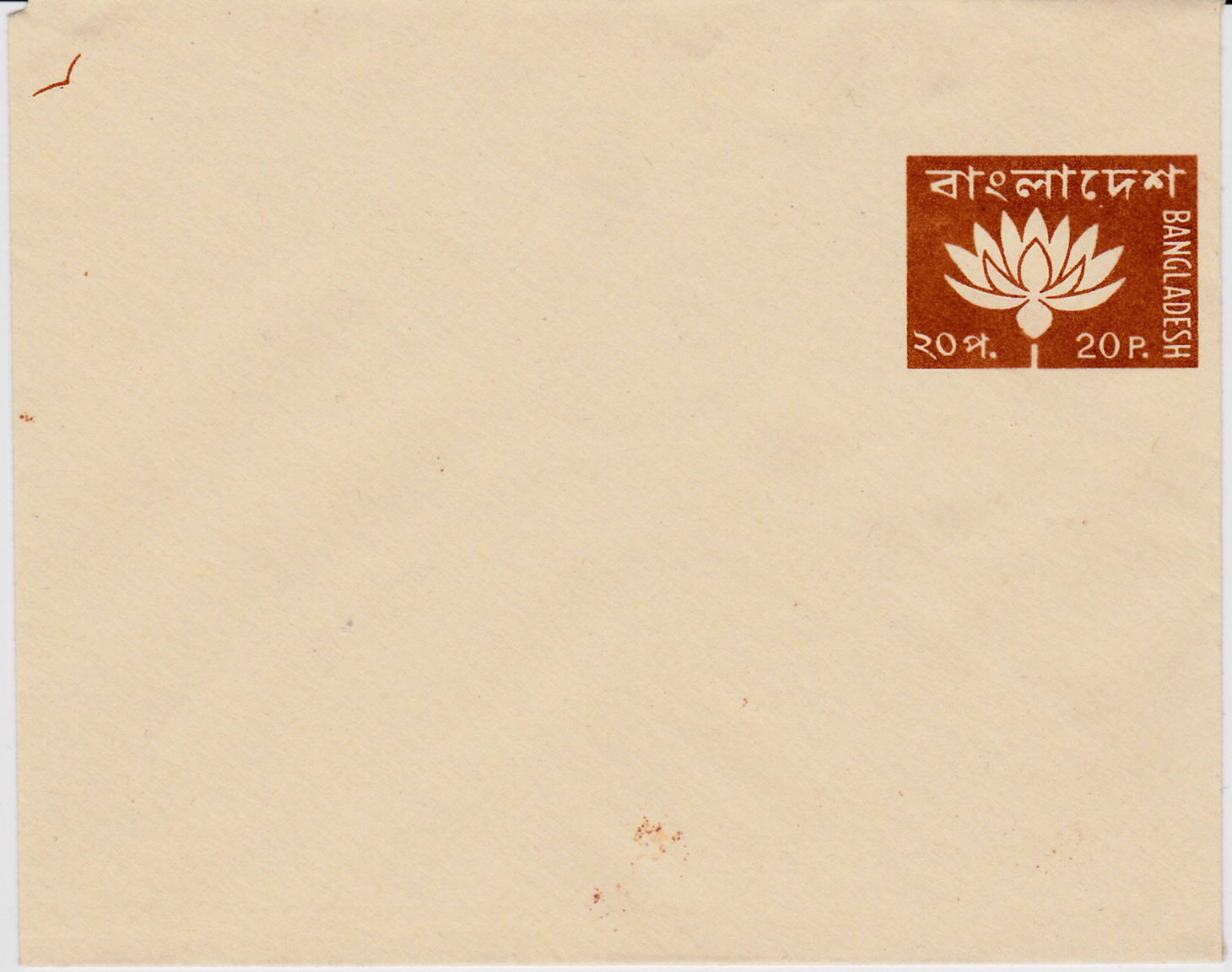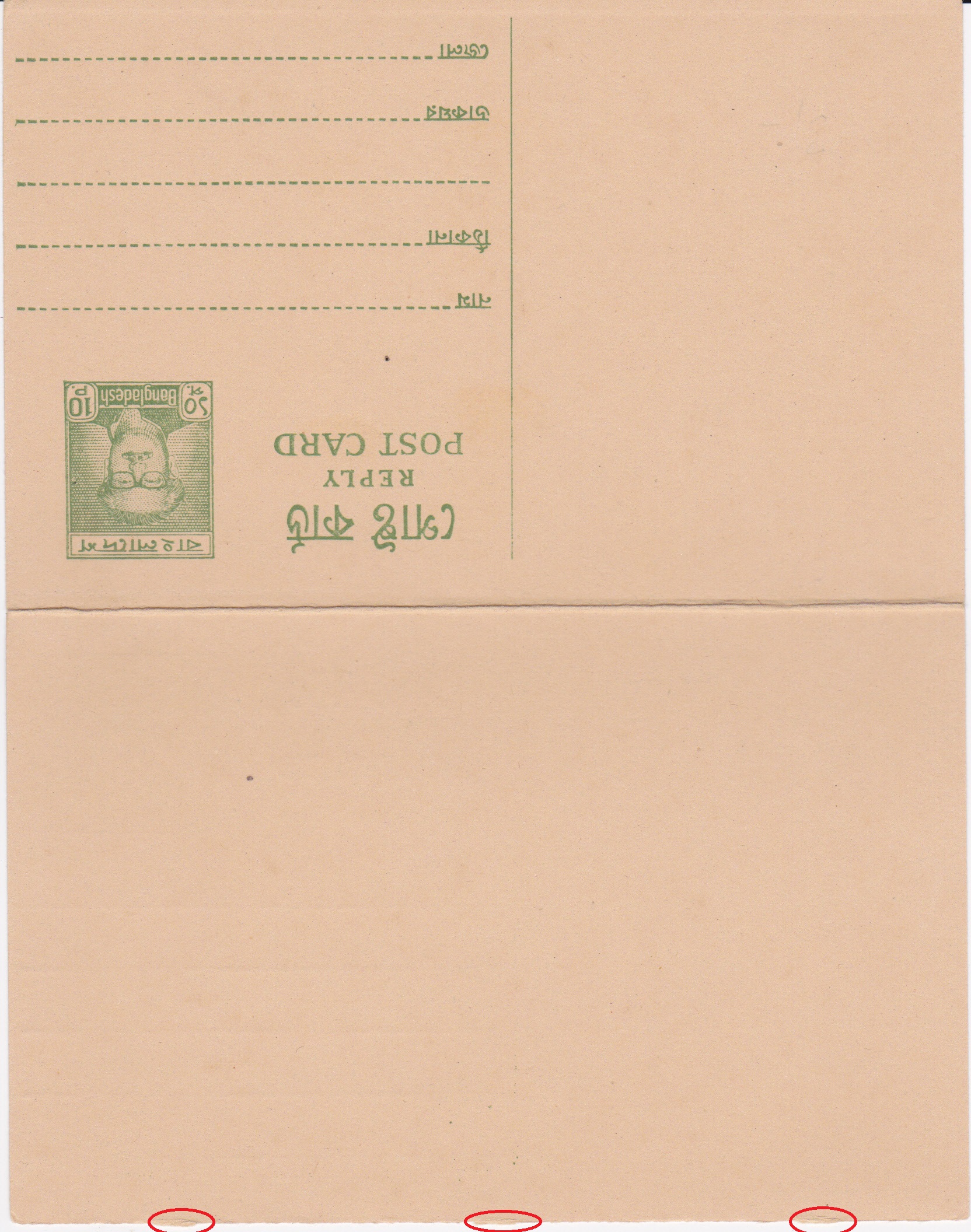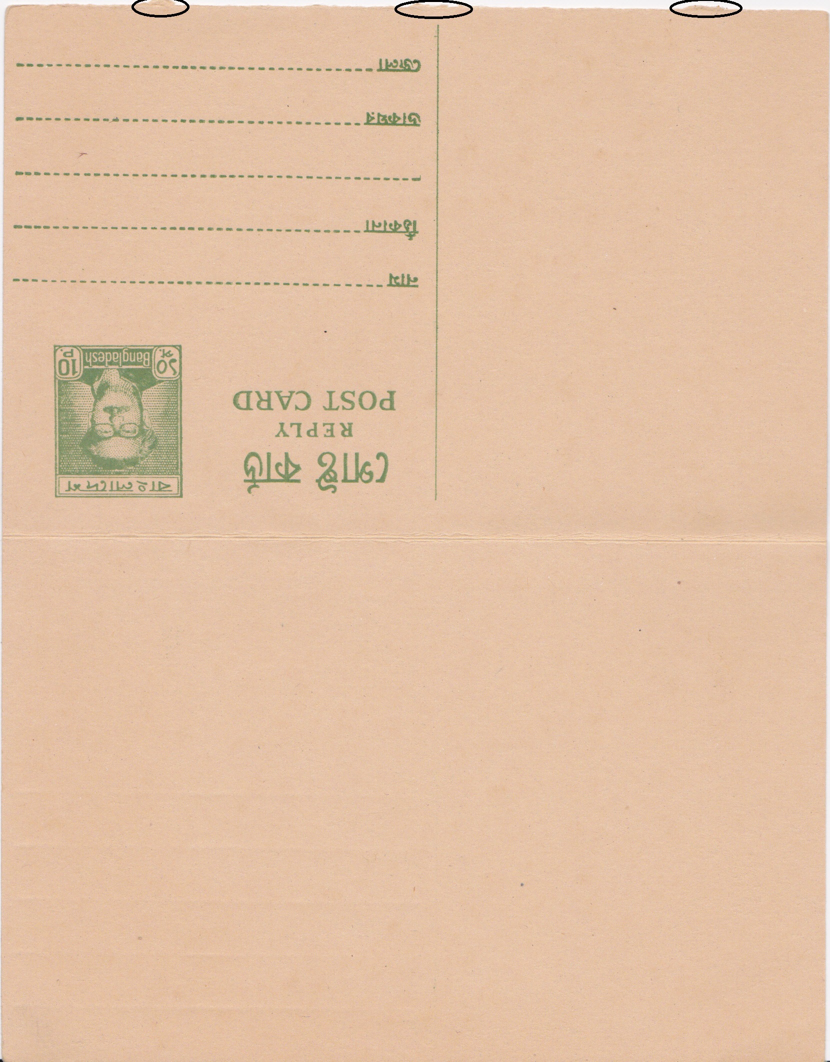 Hier noch ein ungebrauchtes Exemplar dieses Inlandsumschlages mit einer fehlerhaften Produktion und einer daraus resultierenden Verschiebung des Wertzeicheneindruckes weiter nach rechts und nach unten. In der linken oberen Ecke sehen wir die Markierung, an der eigentlich die Faltung des Umschlages erfolgen sollte.