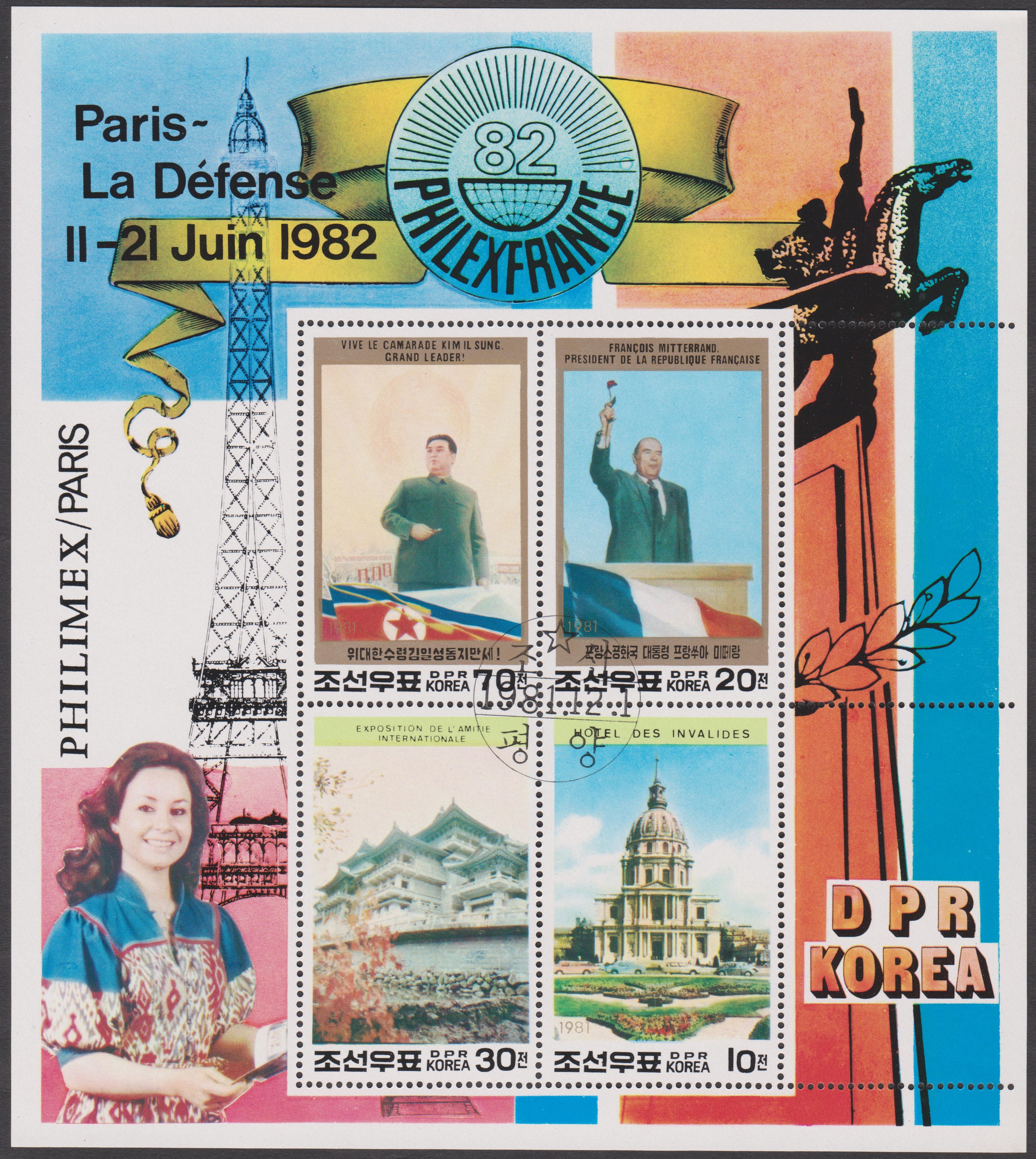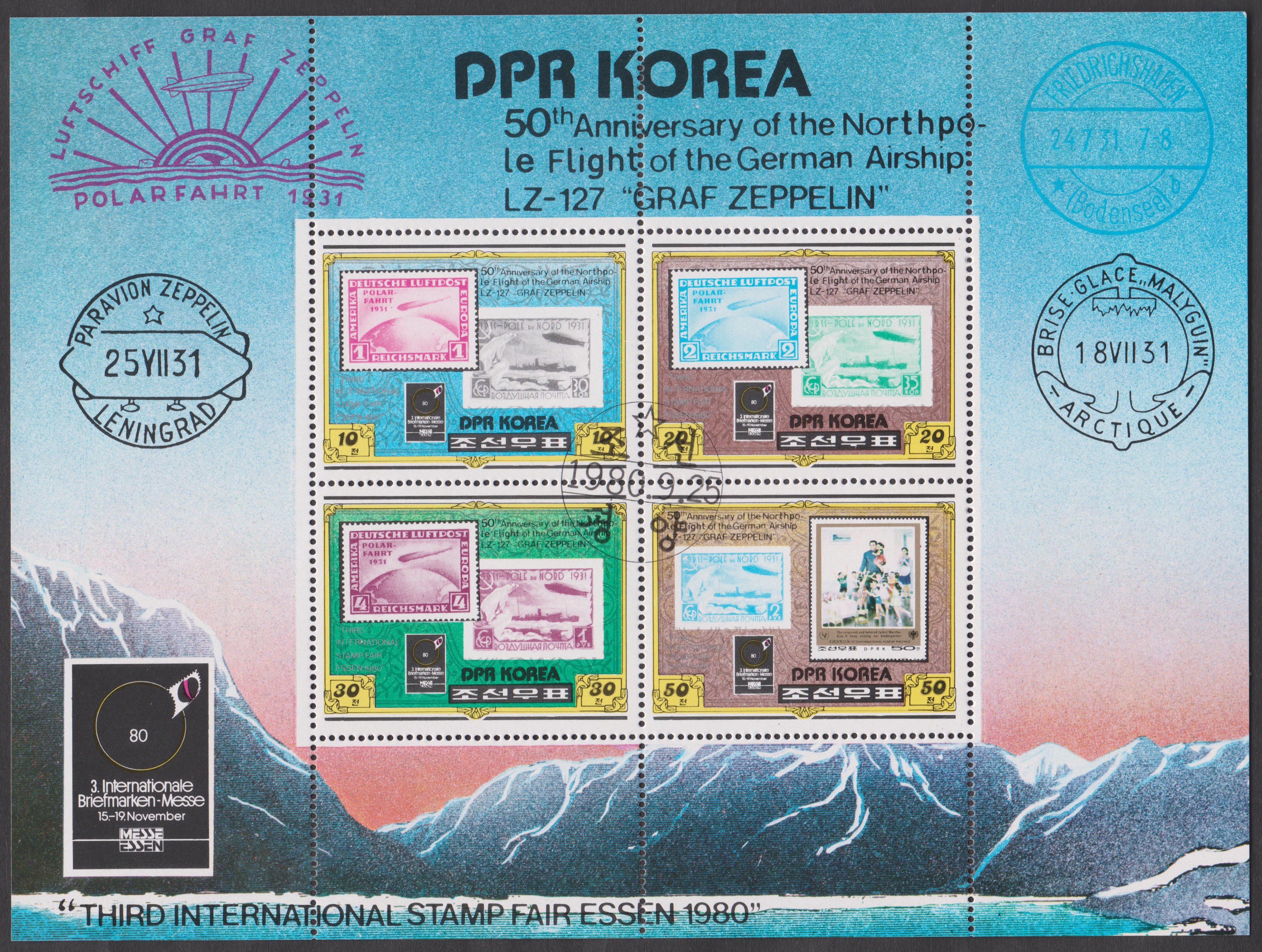 Dieser Block 83 A von Nordkorea erschien am 25.09.1980 aus Anlaß der 3. Internationale Briefmarkenmesse Essen: