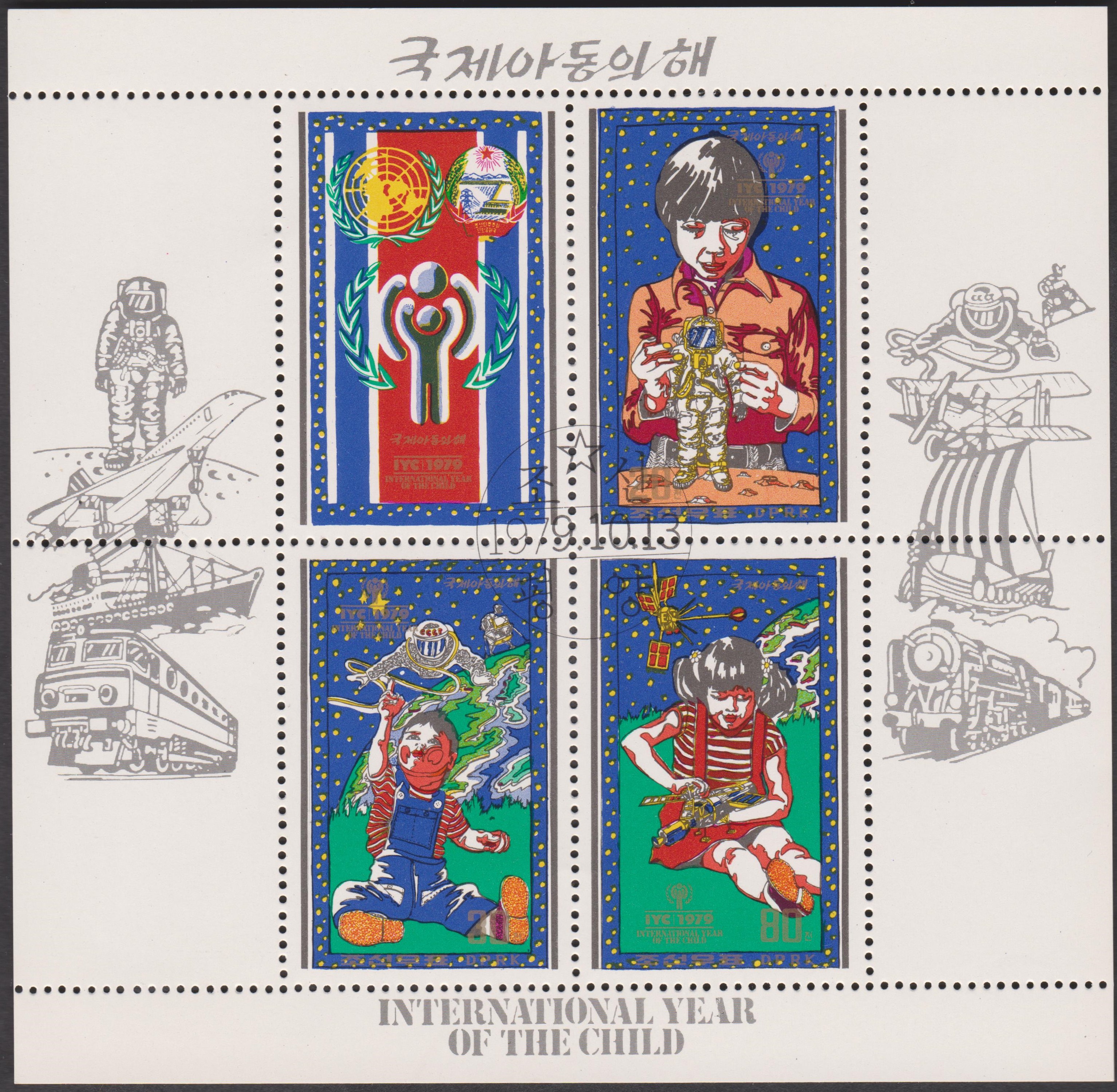 Dieser Block 65 A erschien zum Internationalen Jahr des Kindes und zeigt ein Mädchen mit einem Satelliten:
