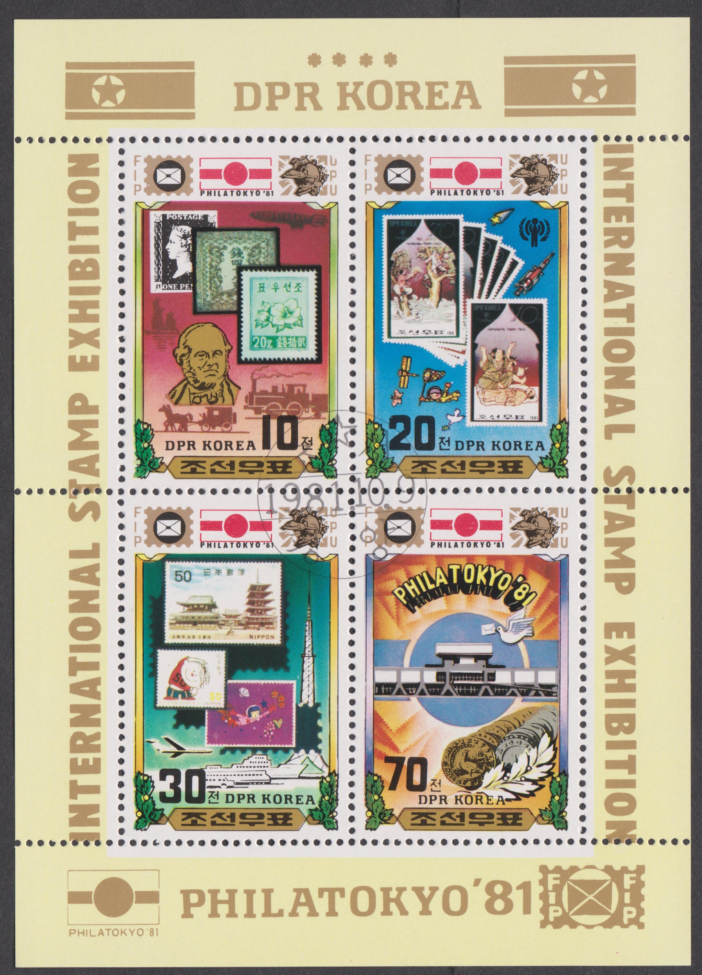 Nordkorea Block 148 A mit MiNr. 2386 erschien am 04.08.1983 anläßlich der Internationalen Briefmarkenausstellung BANGKOK ´83