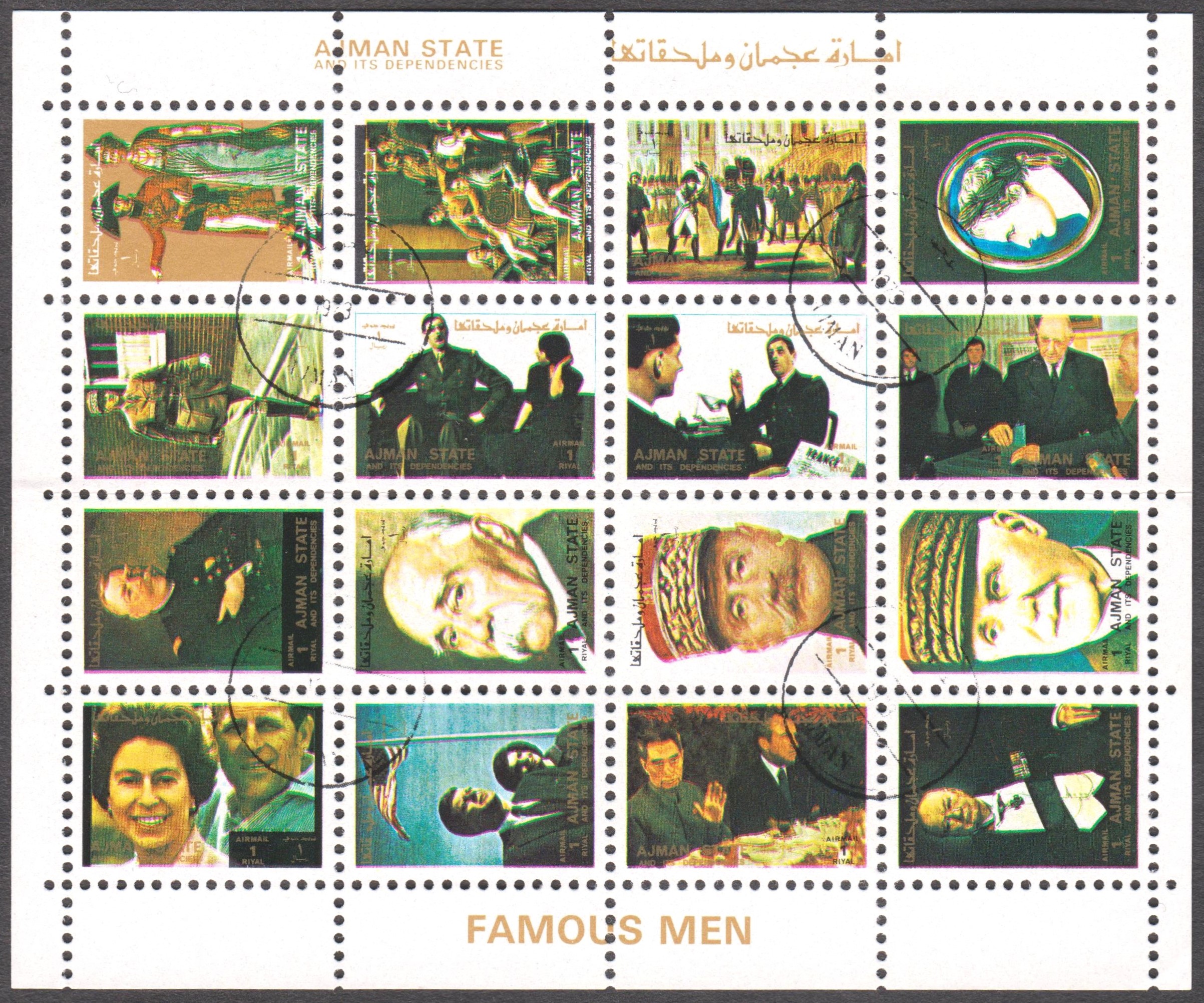 Ajman MiNr. 2909/2924 wurden zusammenhängend im Kleinbogen gedruckt: