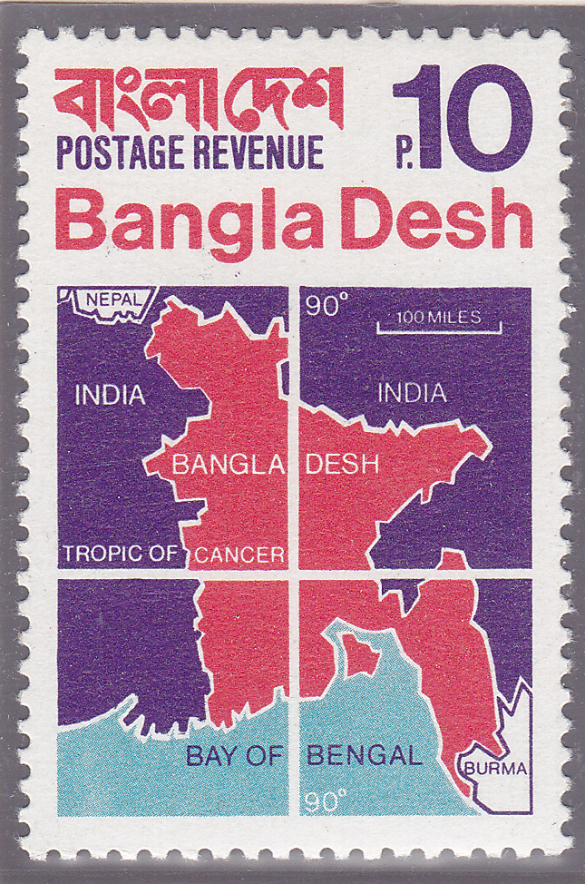 Die ersten eigenen Briefmarken erschienen am 29.Juli 1971, die so genannte Propaganda-Ausgabe. Die Marken wurden von der Bangla Desh Agency aus England vertrieben und sollte nach der Befreiung für den Postverkehr benutzt werden. Bedingt durch Nachschubschwierigkeiten wurden dann jedoch hauptsächlich überdruckte pakistanische Marken verwendet.