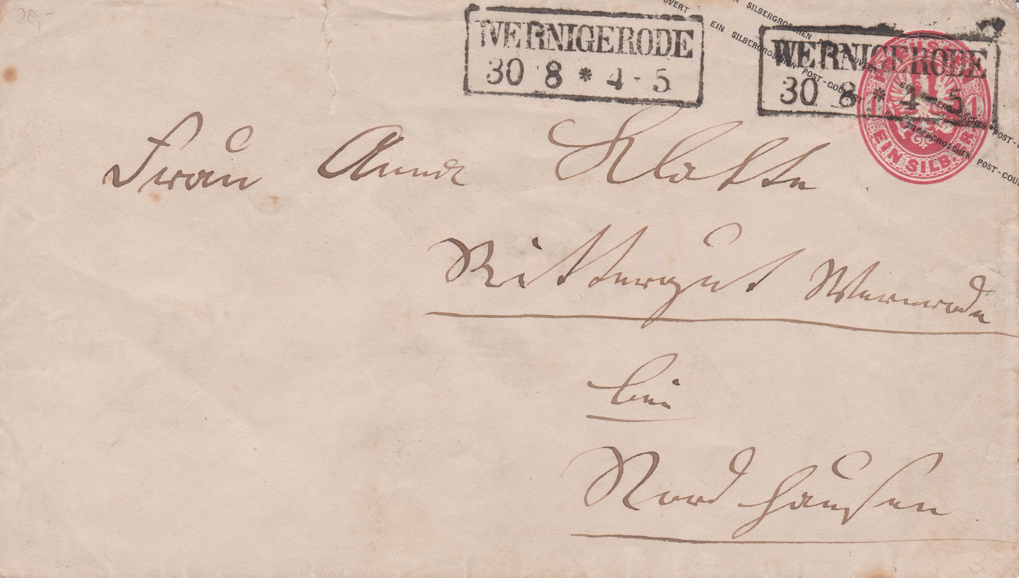 Preußen Ganzsache U 26 A, gelaufen ab WERNIGERODE: