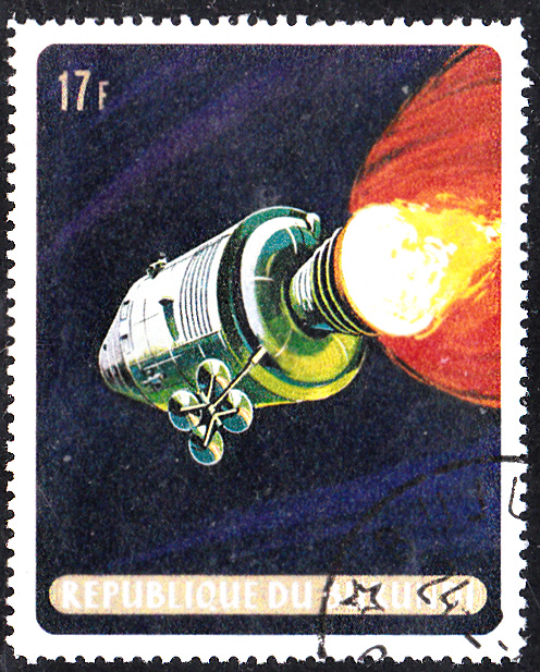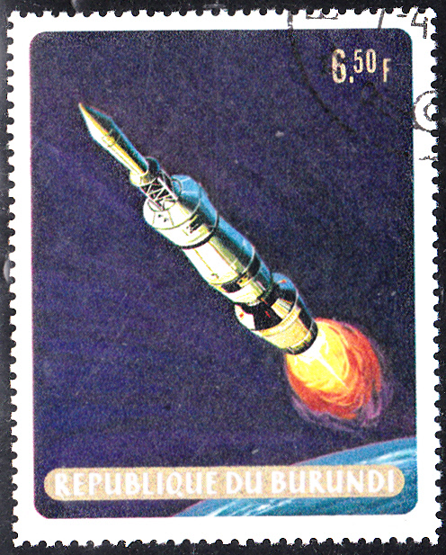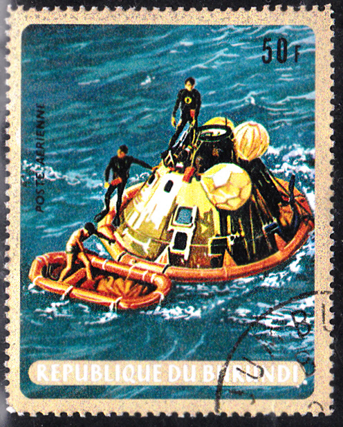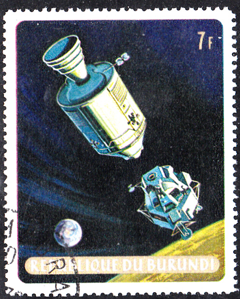 Die Marke zu 17 Fr dieser Ausgabe aus Burundi (MiNr 524 A) zeigt die Kapsel bei der Mondumkreisung.