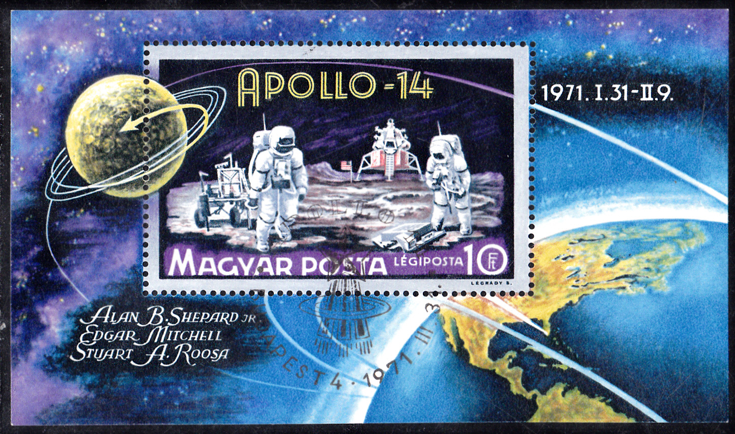 In Ungarn ist zum Mondflug von Apollo 14 ein Block (MiNr Block 80 A) mit einer Marke (MiNr 2661 A) mit der Abbildung der Astronauten, des Gerätewagen und der Landefähre auf dem Mond.