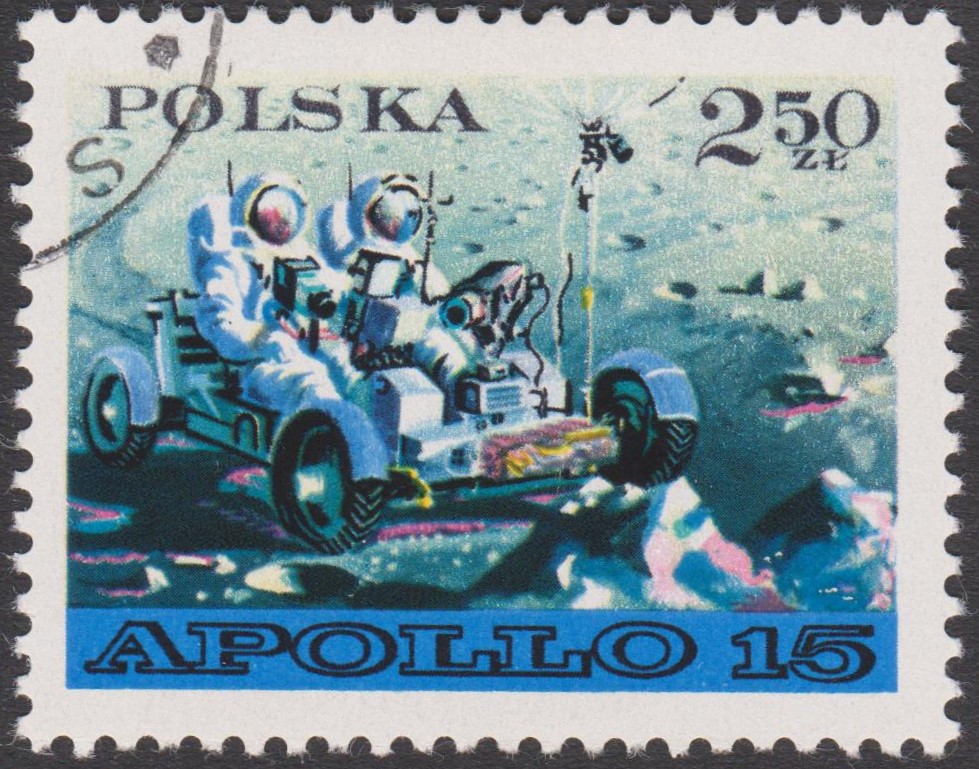 Polen MiNr. 2123 zeigt die Astronauten bei der Fahrt mit dem Mondauto: