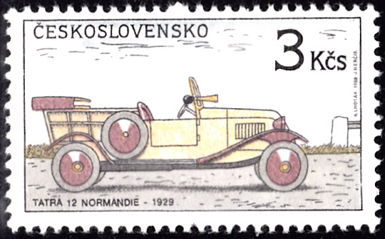 Der Nesselsdorf E wird auf dieser Marke aus der Tschechoslowakei (MiNr 2949) als Tatra NW Typ E Baujahr 1905 vorgestellt.