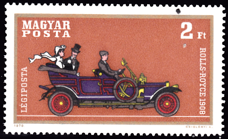 Auf der Marke aus Großbritannien (MiNr 932) ist auf dem oberen Teil der Marke ein Rolls-Royce Silver Ghost Baujahr 1907 zu sehen.