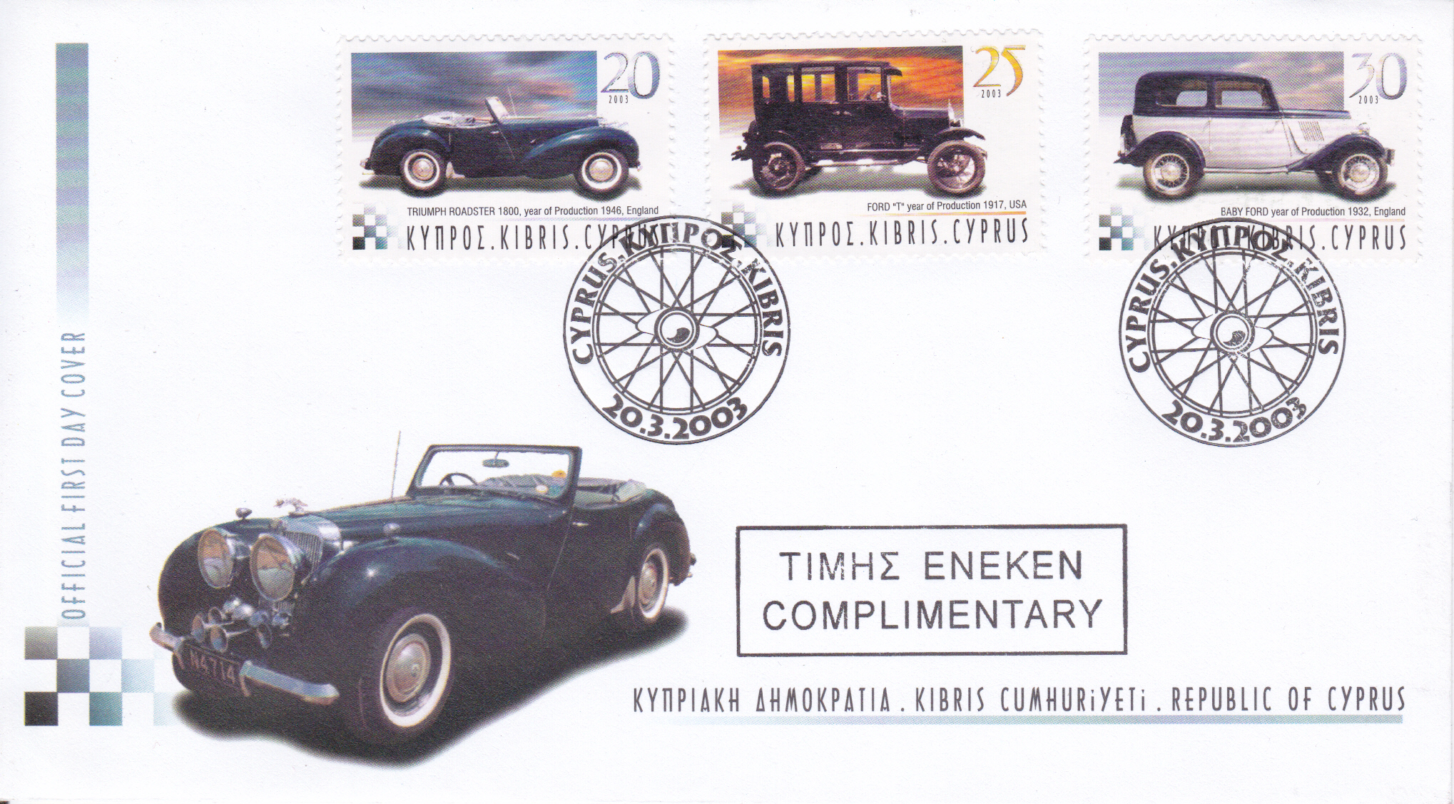 Diese Marke wurde hier mit zwei weiteren Marken auf einem FDC der Post Zyperns verklebt und mit dem Ersttagsonderstempel entwertet.