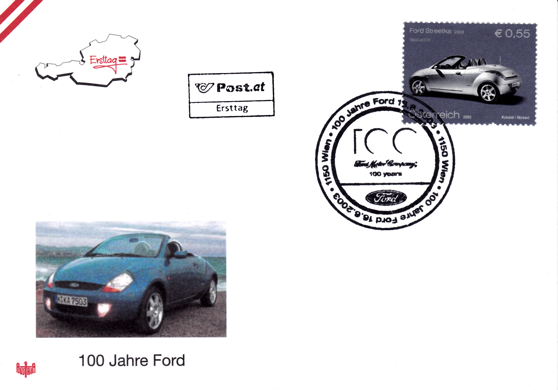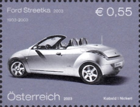 Diese Marke aus Österreich (MiNr 2429) bildet einen Ford Streetka ab.