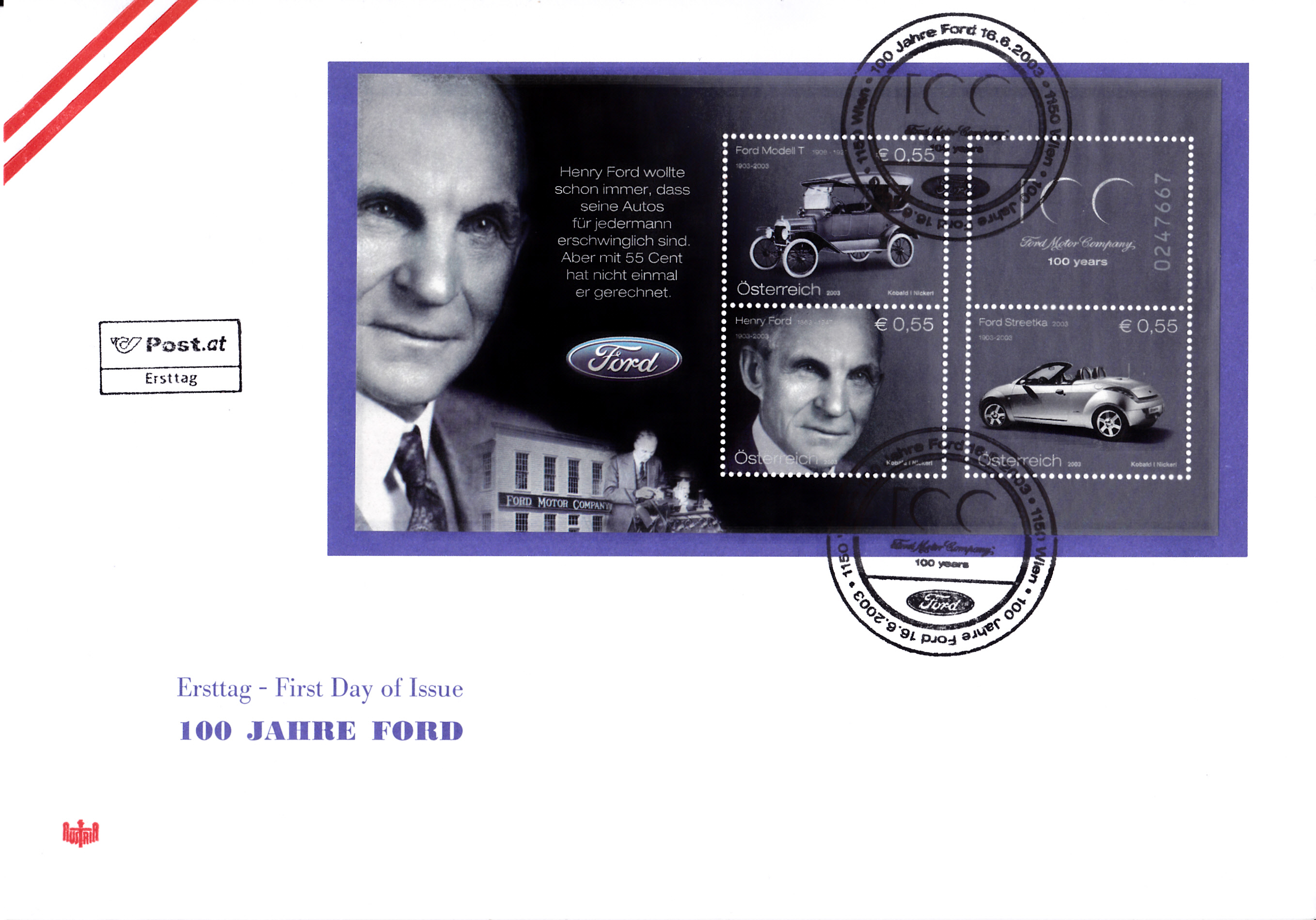 Diese Marke ist zusammen mit zwei anderen Marken und einem Zierfeld zusammen in einem Block (MiNr Block 20) zum Jubiläum "100 Jahre Ford-Automobile" erschienen.