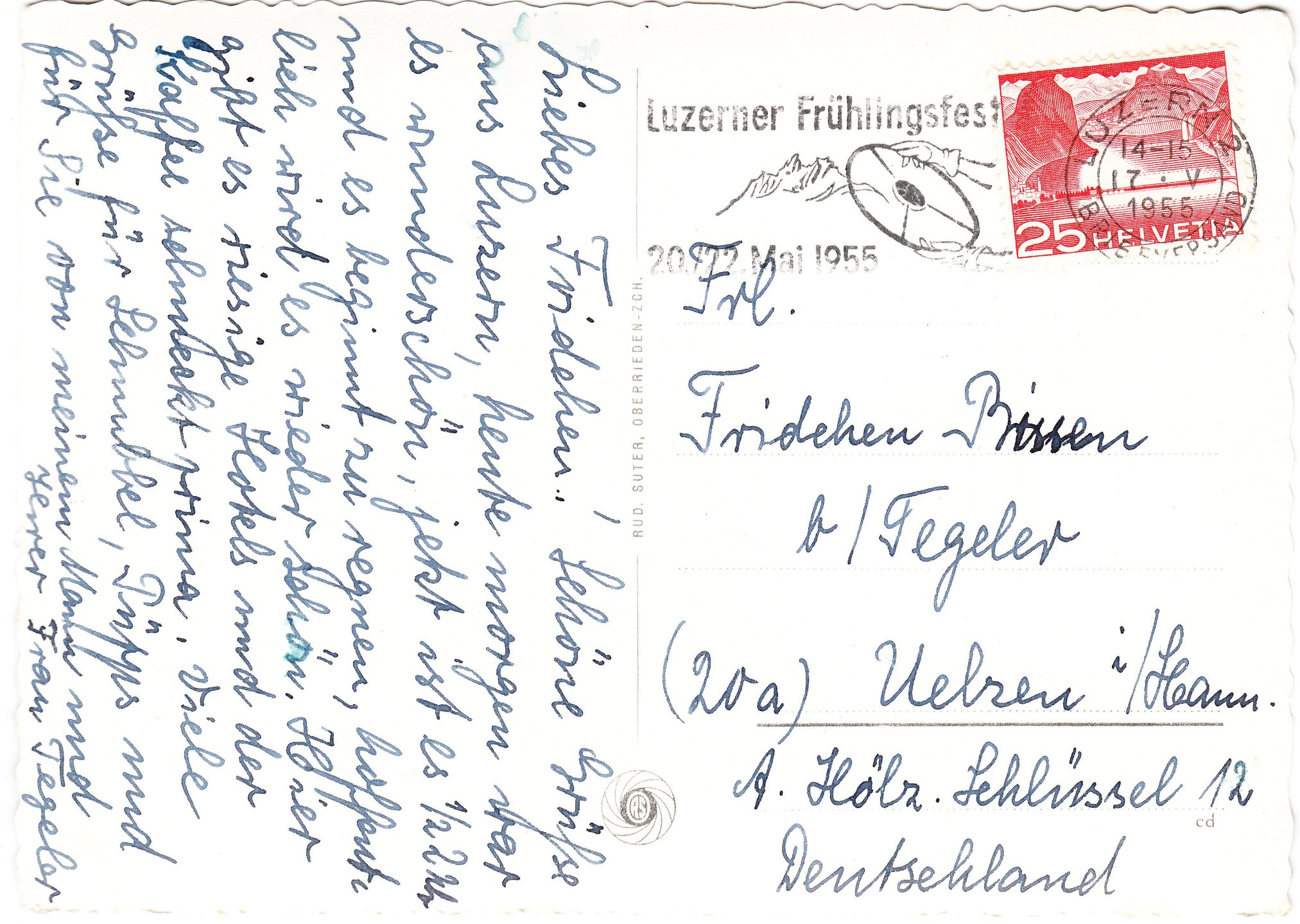Den Anfang macht dieses Dreispeichenlenkrad aus den Fünfziger Jahren, das im Werbeklischee dieses Maschinenstempels aus Luzern aus Anlaß des Luzerner Frühlingsfestes 1955 zum Einsatz kam: