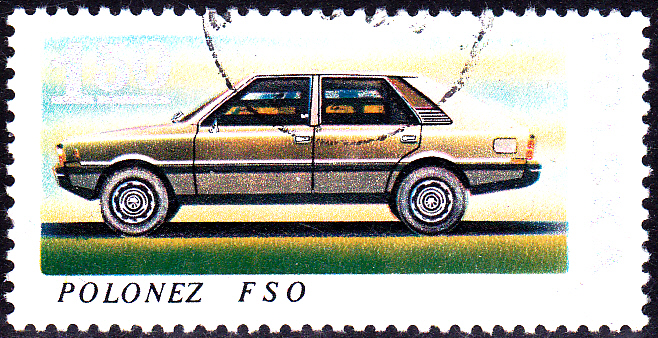 Auf dieser Marke aus Polen (MiNr 2562) wird ein Pkw "Polonez" gezeigt.