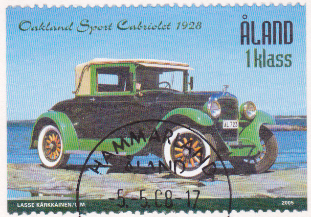 Diese Marke der Alandinseln (MiNr 247) bildet ein Oakland Sport Cabriolet aus dem Jahre 1928 ab.