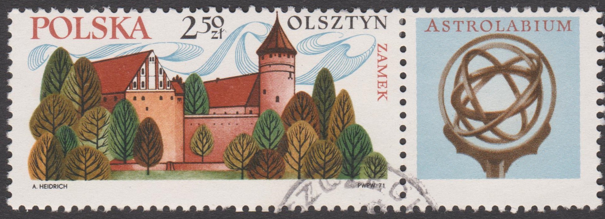 Polen MiNr. 2090 zeigt Schloss Allenstein, das Zierfeld zeigt das Astrolabium: